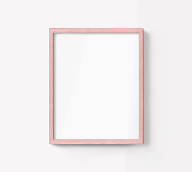 Moldura de linhas rectas em pinho, com acabamento a rosa escovado com patine.